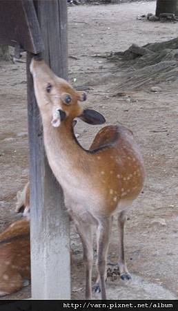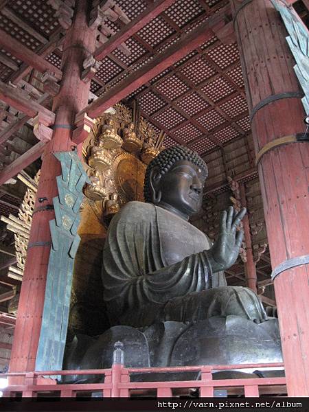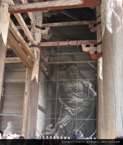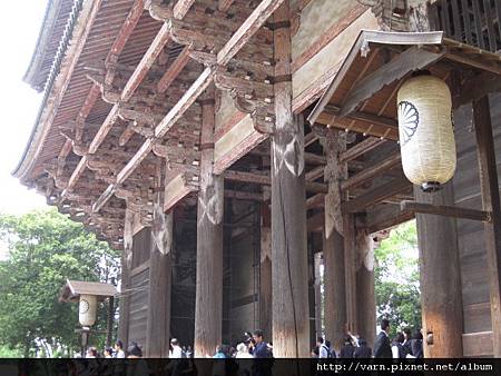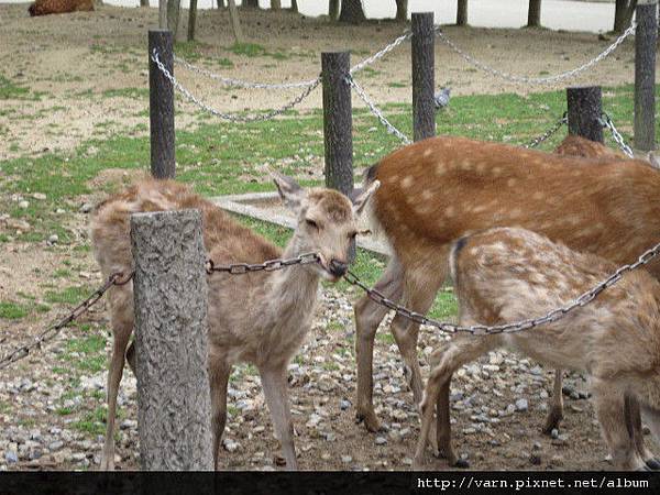 兩千五百頭的鹿,浩浩蕩蕩的見人就往你的背包與口袋湊(有不少腦袋上頂著兩枝角咧),原本打算一到這裡就買鹿仙貝餵食外加拐照片的我們,嚇得光逃都來不及,哪有閒情買什麼餌食上供……最後就是跟身邊的鹿快速的拍個照,之後立刻轉身逃進眼前的東大寺。(大笑)