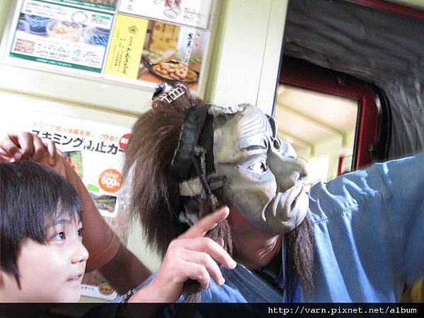 不知道是否同一個人扮的,不過他專找車上的小朋友騷擾合拍紀念照,遊客想與他合影應該也是可以。這樣貼心的舉動,看在小朋友們眼中自然是大受好評!
